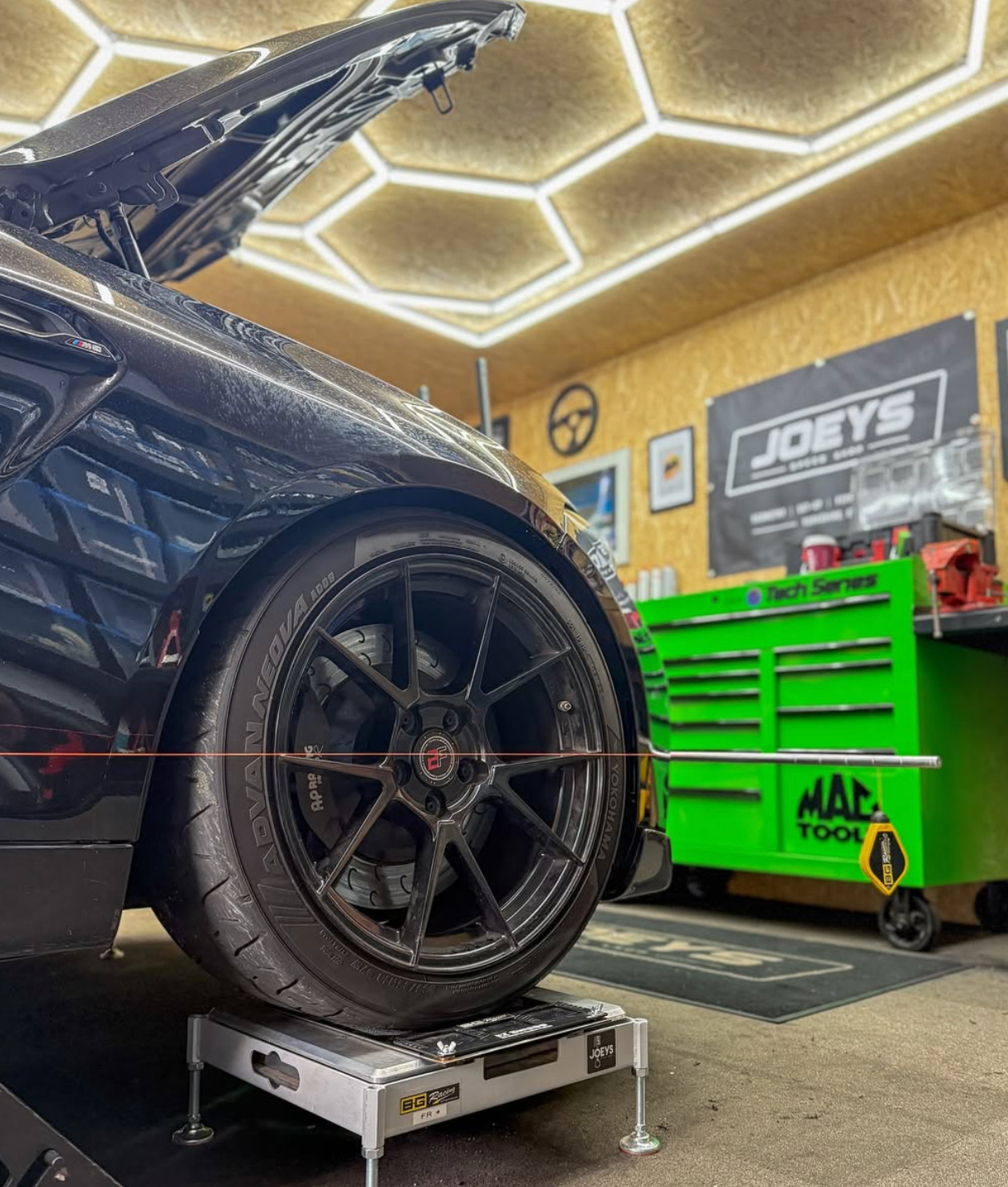 We offer geo (geometry) setups tailored to your driving style and performance goals, ensuring your car handles at its absolute best on both road and track. Working closely with Joey Speed Shop, we combine expert knowledge and cutting-edge alignment technology to dial in camber, caster, toe, and ride height for maximum grip and balance. Whether you're chasing lap times or refining your setup, our collaborative approach delivers results you can feel behind the wheel.